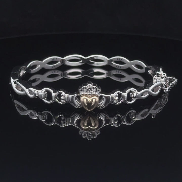 Silver Bangle Solid 10K Heart Claddagh Medium