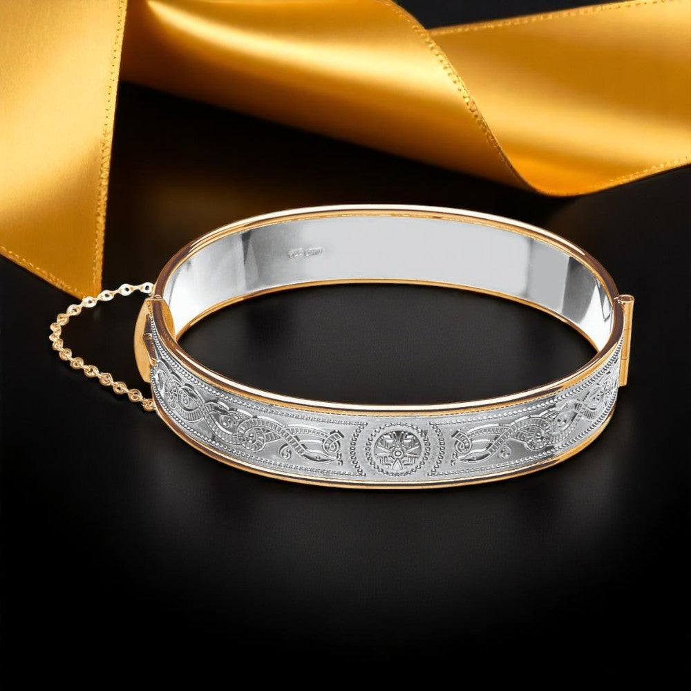 Silver Bangle Wide with Rolled Gold Trims