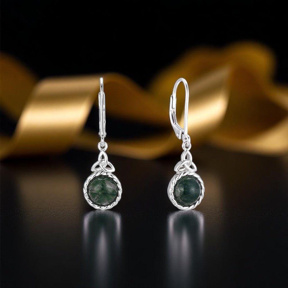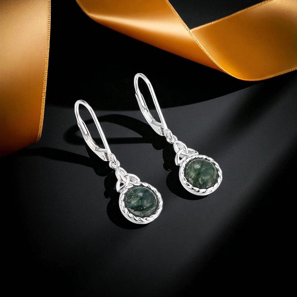 Moss Agate Trinity Drop Earrings