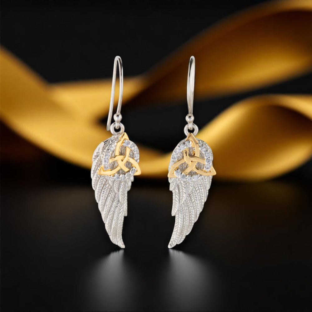 Gold Plated Trinity & Silver Angel Wing Earrings