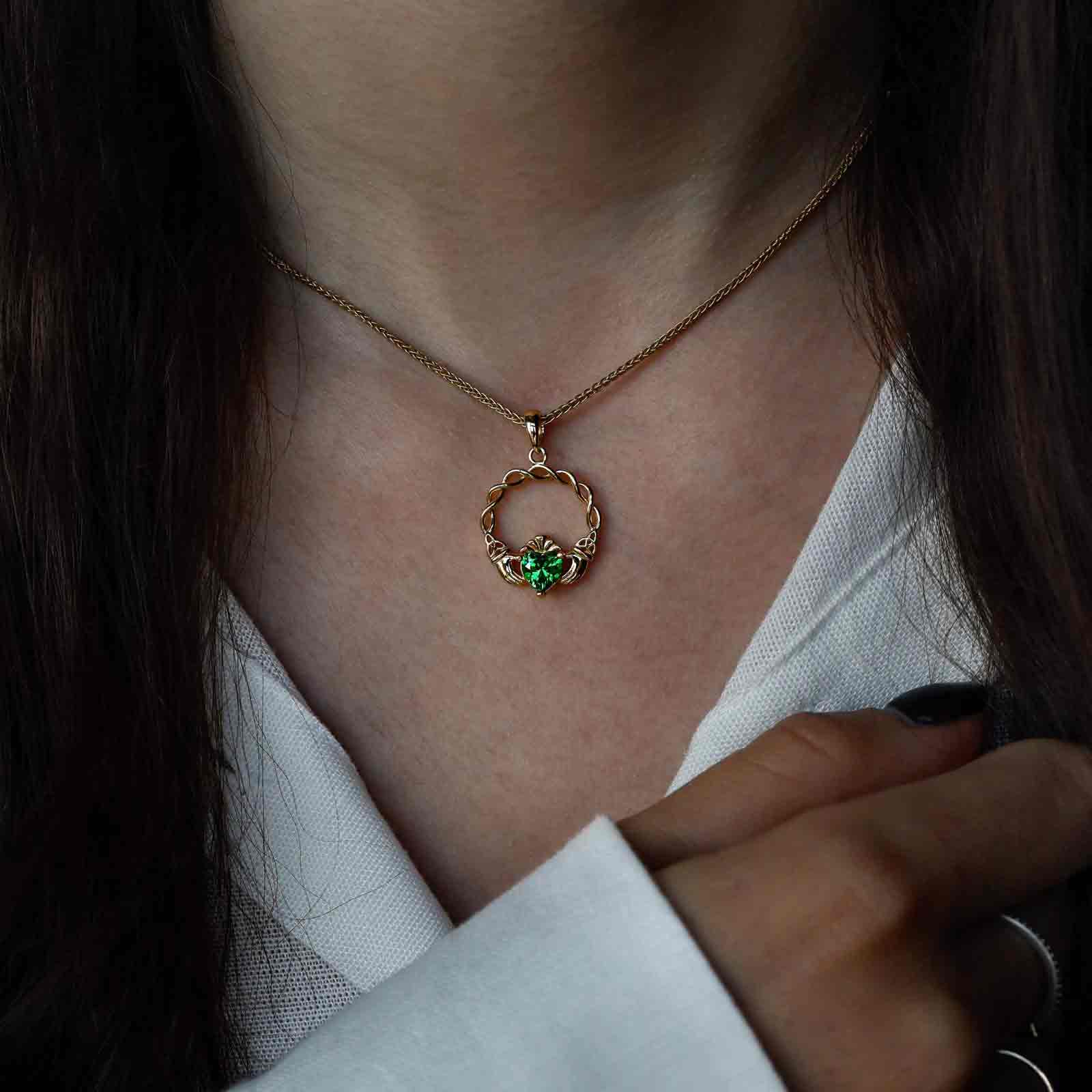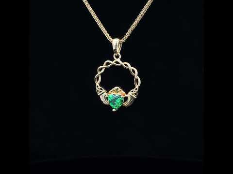 14K Gold Vermeil Green CZ Claddagh Pendant