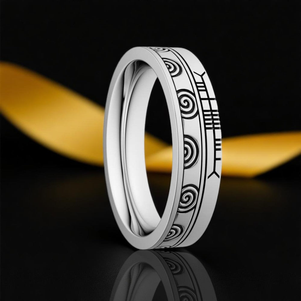 Newgrange Wedding Ring with Ogham - Narrow