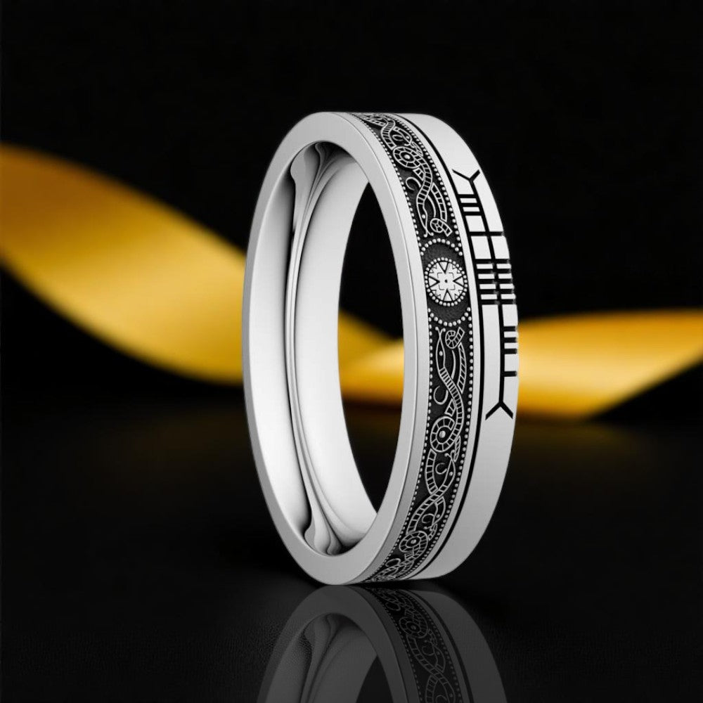 Celtic Warrior Wedding Ring with Ogham - Narrow