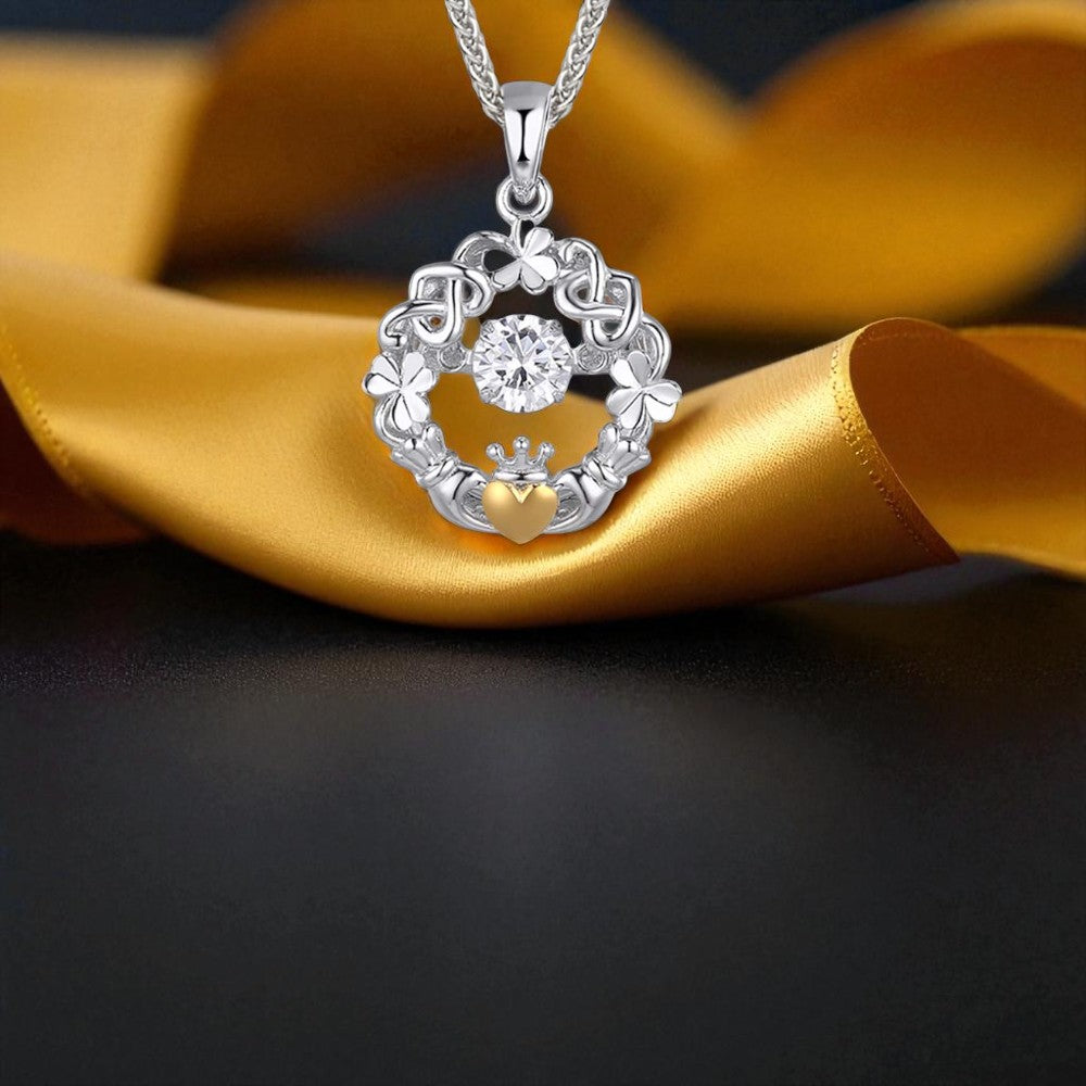 Claddagh & Shamrock Dancing Stone Pendant