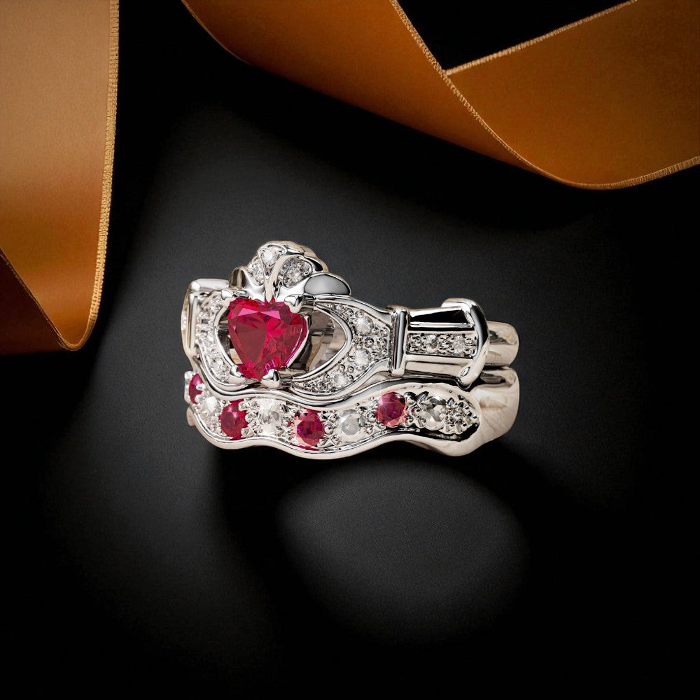 Ruby and Diamond Boru Signature Claddagh Ring and Matching Ring
