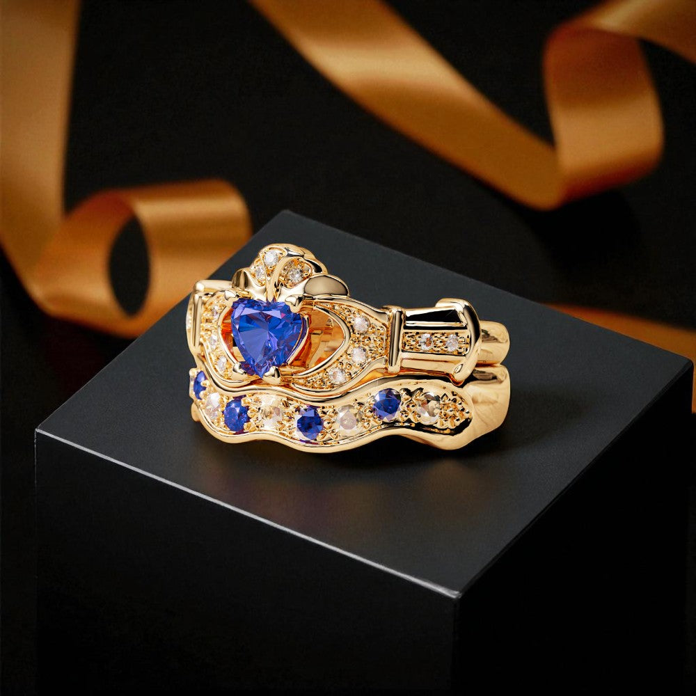 Sapphire and Diamond Boru Signature Claddagh Ring and Matching Ring