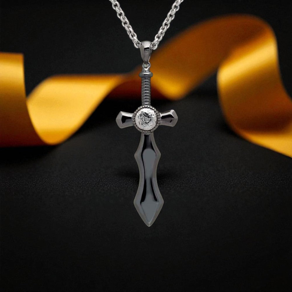 Our Nuada Sword Pendant in Black Rhodium has been crafted in 925 Sterling Silver and coated with Black Rhodium giving it a dark masculine look.