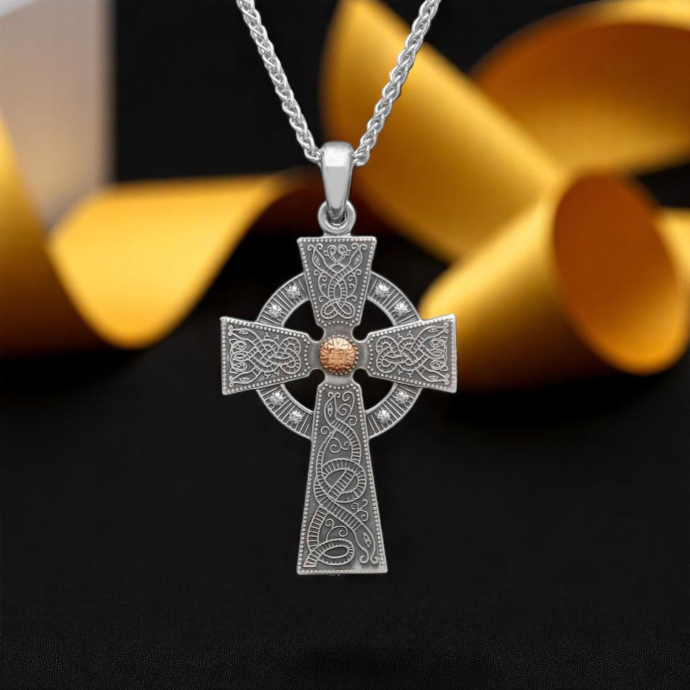 Antiqued Silver & Rose Gold Bead Cross Celtic Warrior 20" Chain