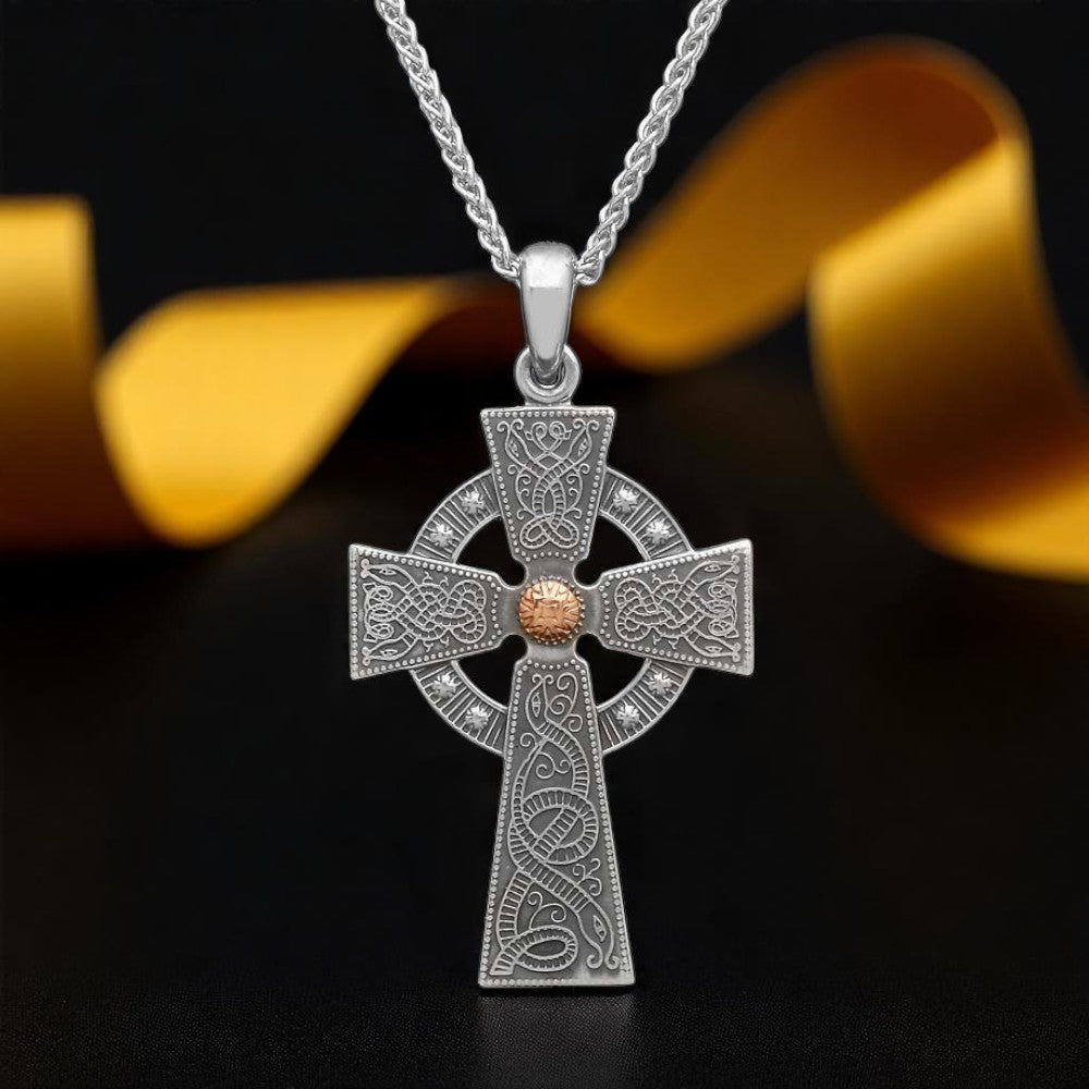Antiqued Silver & Rose Gold Bead Large CW Cross