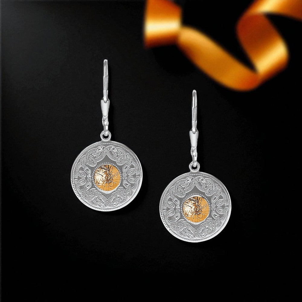 Celtic Warrior Drop Earrings with 18K Gold Beads - Small