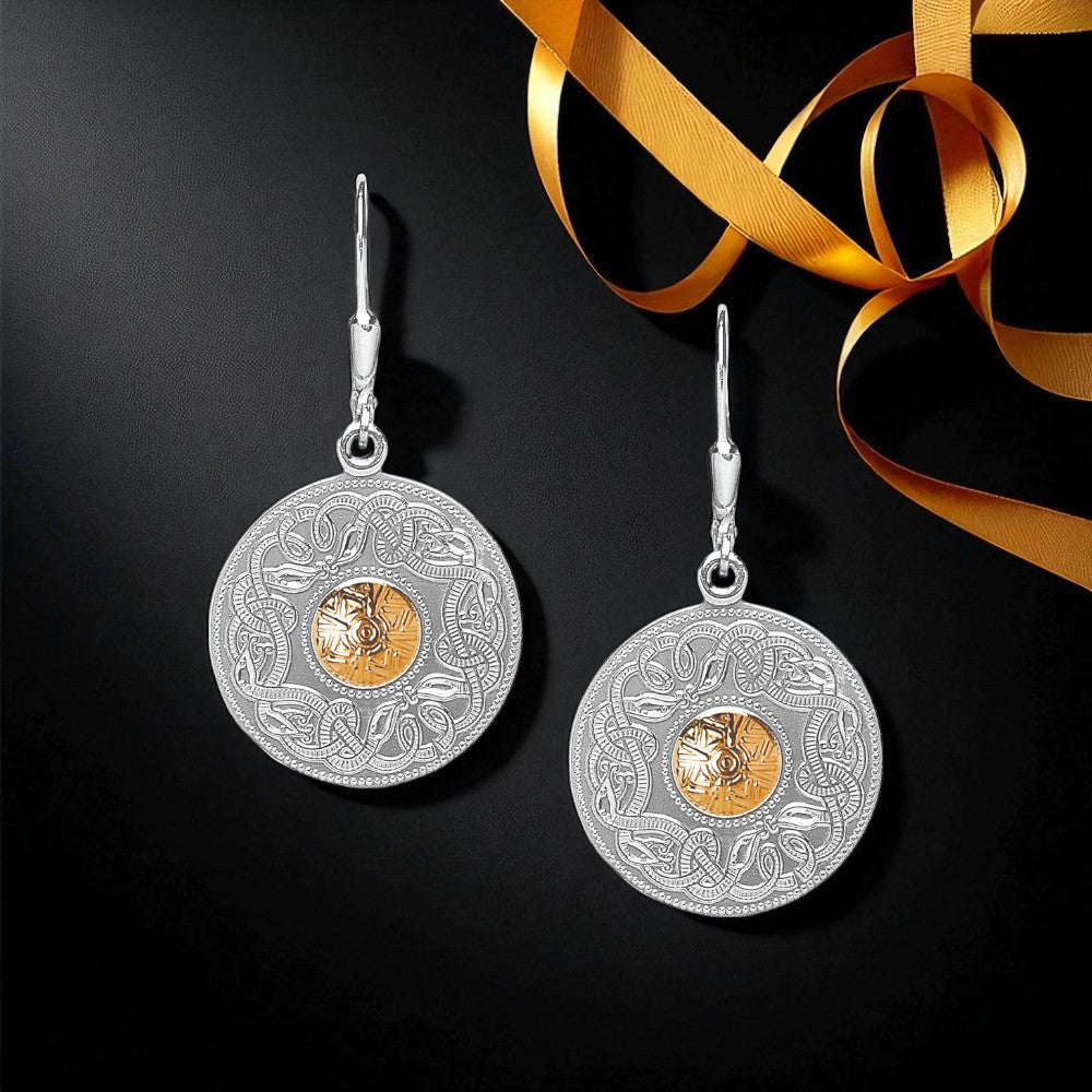Celtic Warrior Drop Earrings with 18K Gold Beads - Medium