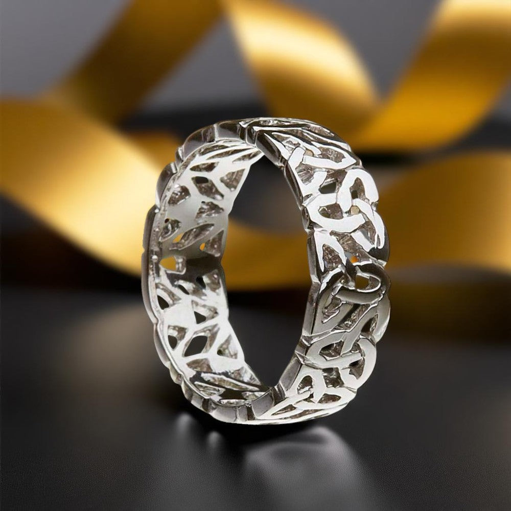 This Celtic ring is an open filigree ring and is available in a choice of precious metals.