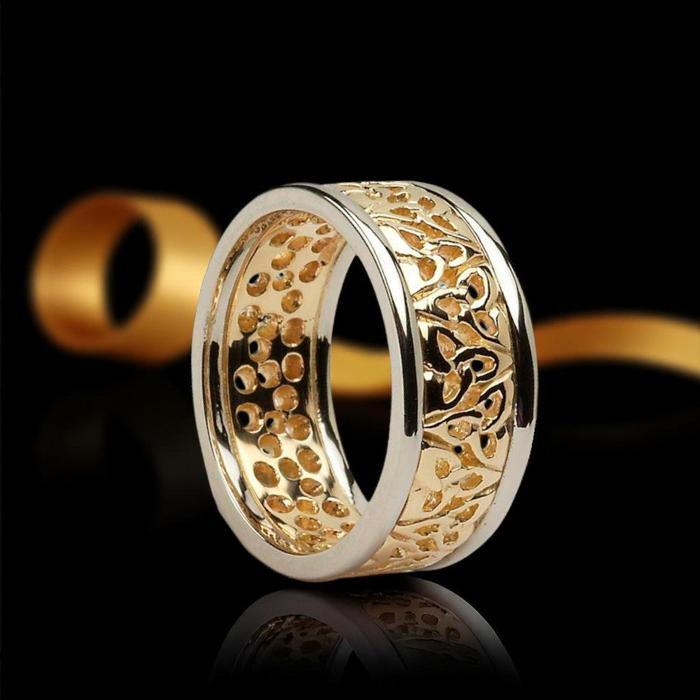 This Celtic ring is an open filigree ring and is available in a choice of precious metals.