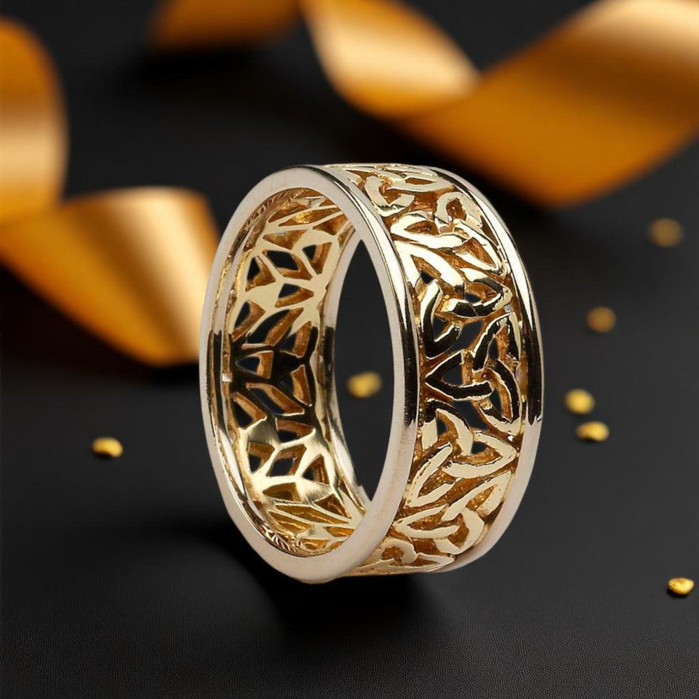 This Celtic ring is an open filigree ring and is available in a choice of precious metals.