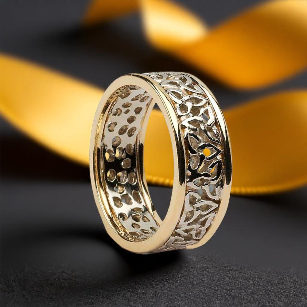 Trinity Knot Filagree Narrow Wedding Ring with Yellow Trims