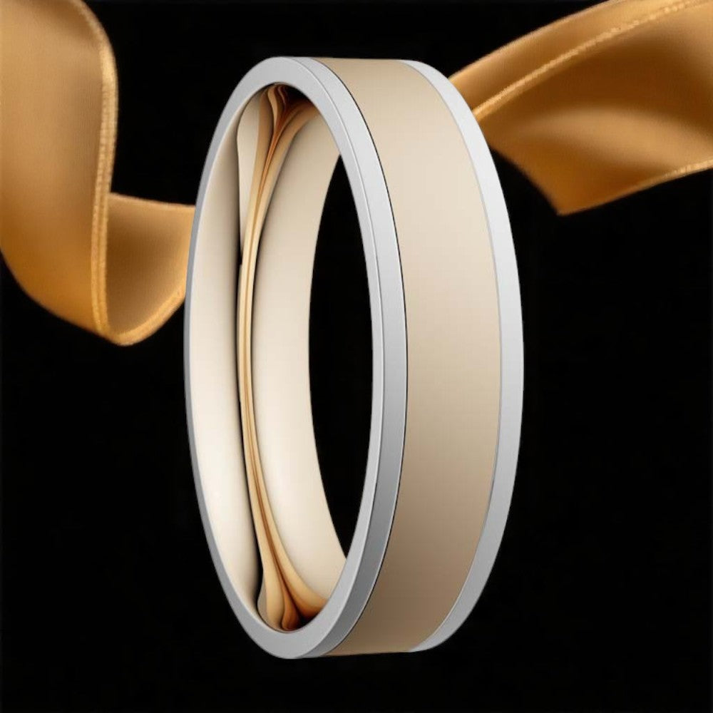 Superior Quality Two Tone Wedding Ring. Designed to incorporate a flush finish to the rails and created with a comfort fit profile.