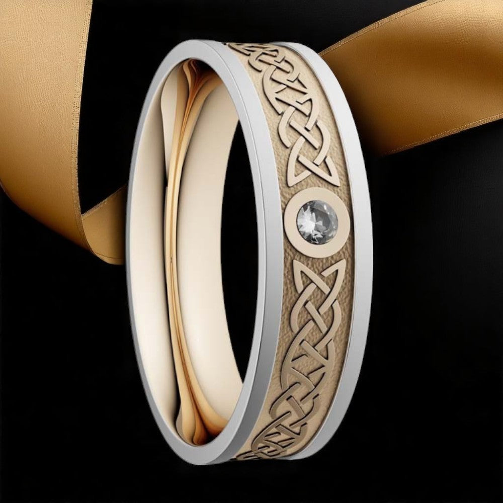 5mm Diamond Lovers Knot Ring Yellow with White Rails