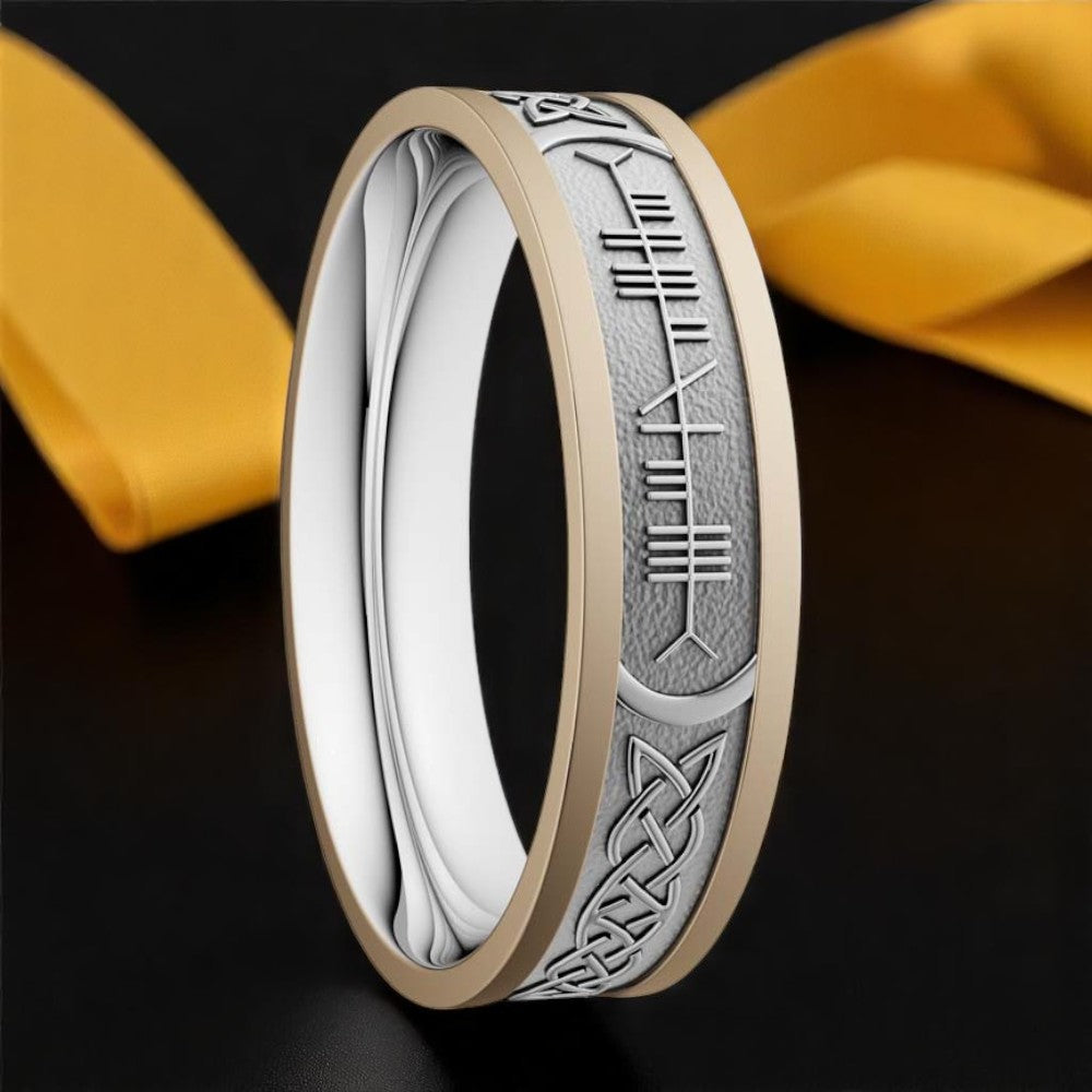 6.5mm Custom Ogham SoulMate Ring White with Yellow Rails