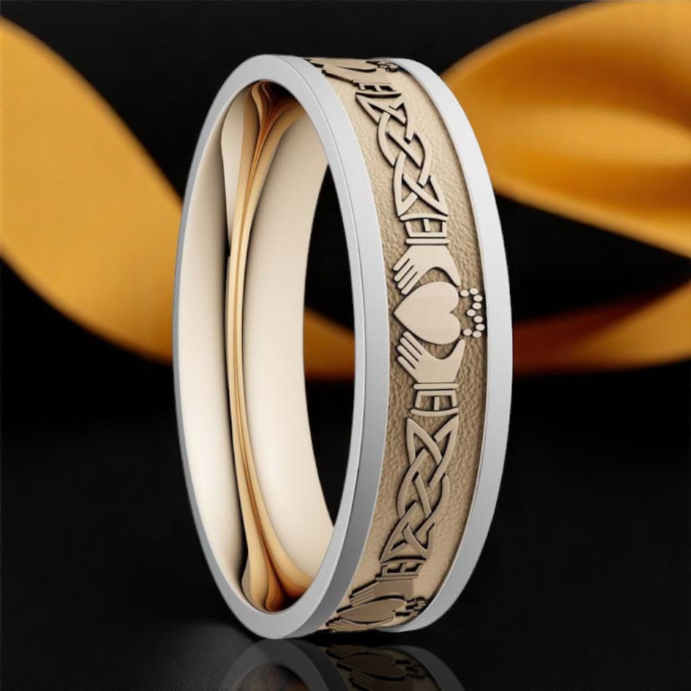 For centuries this was used as a wedding ring by the fisher folk of Claddagh village, which nestled outside the walls of Galway city in the west of Ireland. Claddagh rings are worn as friendship, engagement or wedding rings depending on how they are worn.